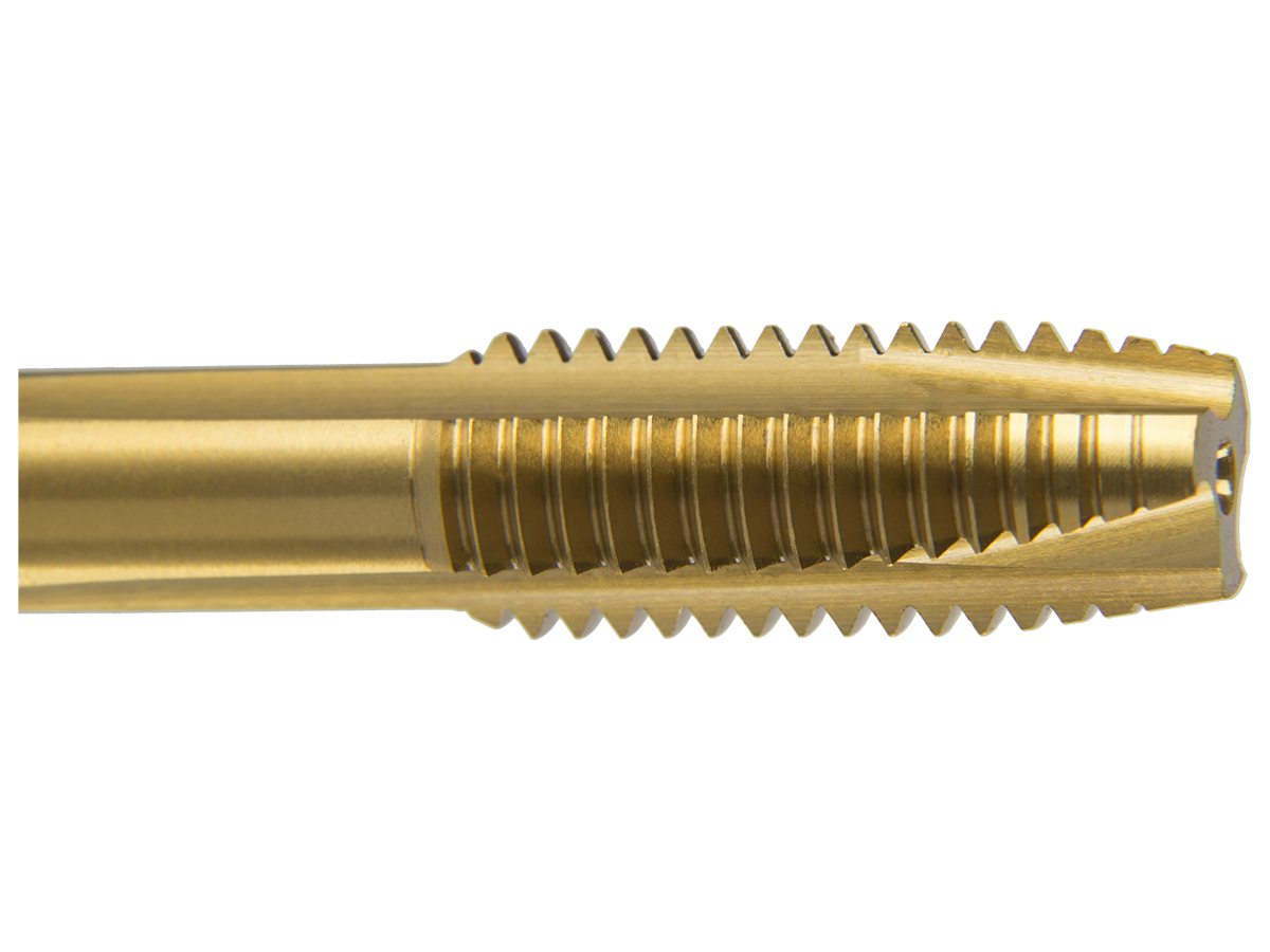 Машинный метчик из быстрорежущей стали М2 (Р6М5) с покрытием TiN для обработки сквозных отверстий.